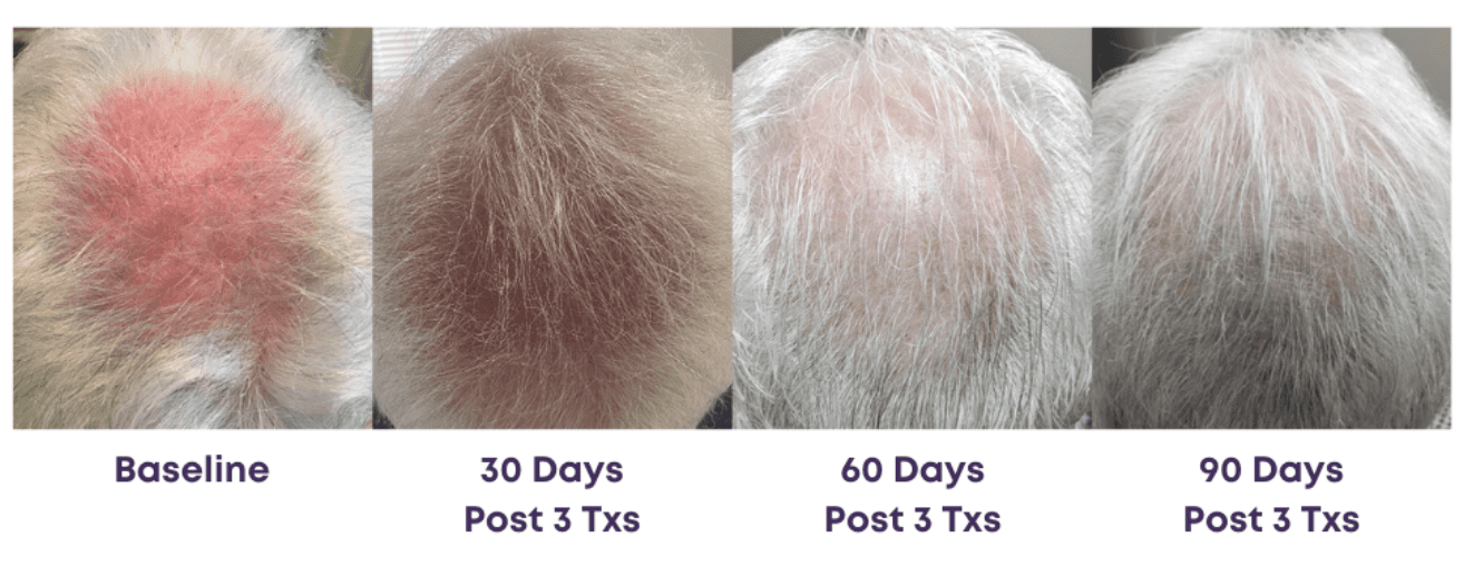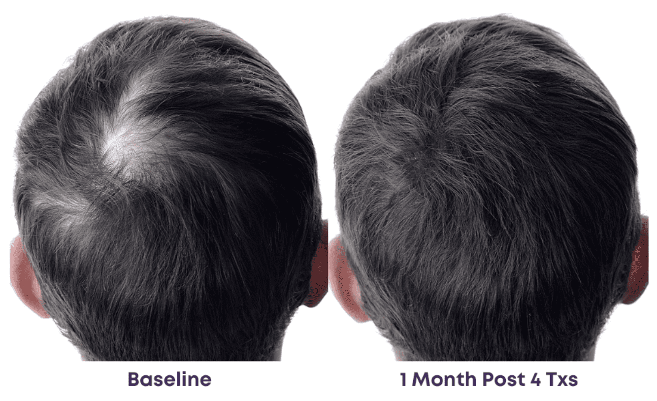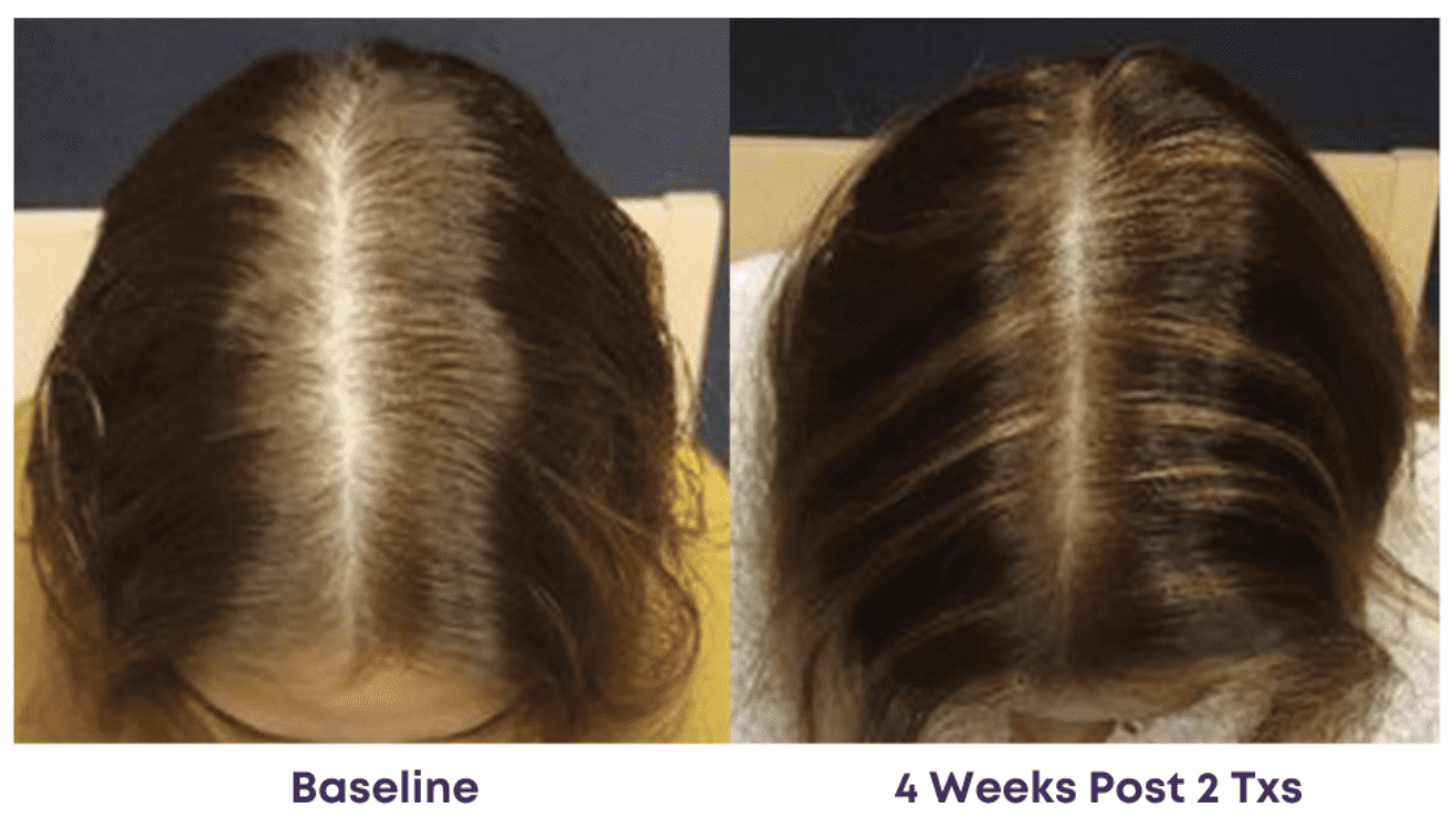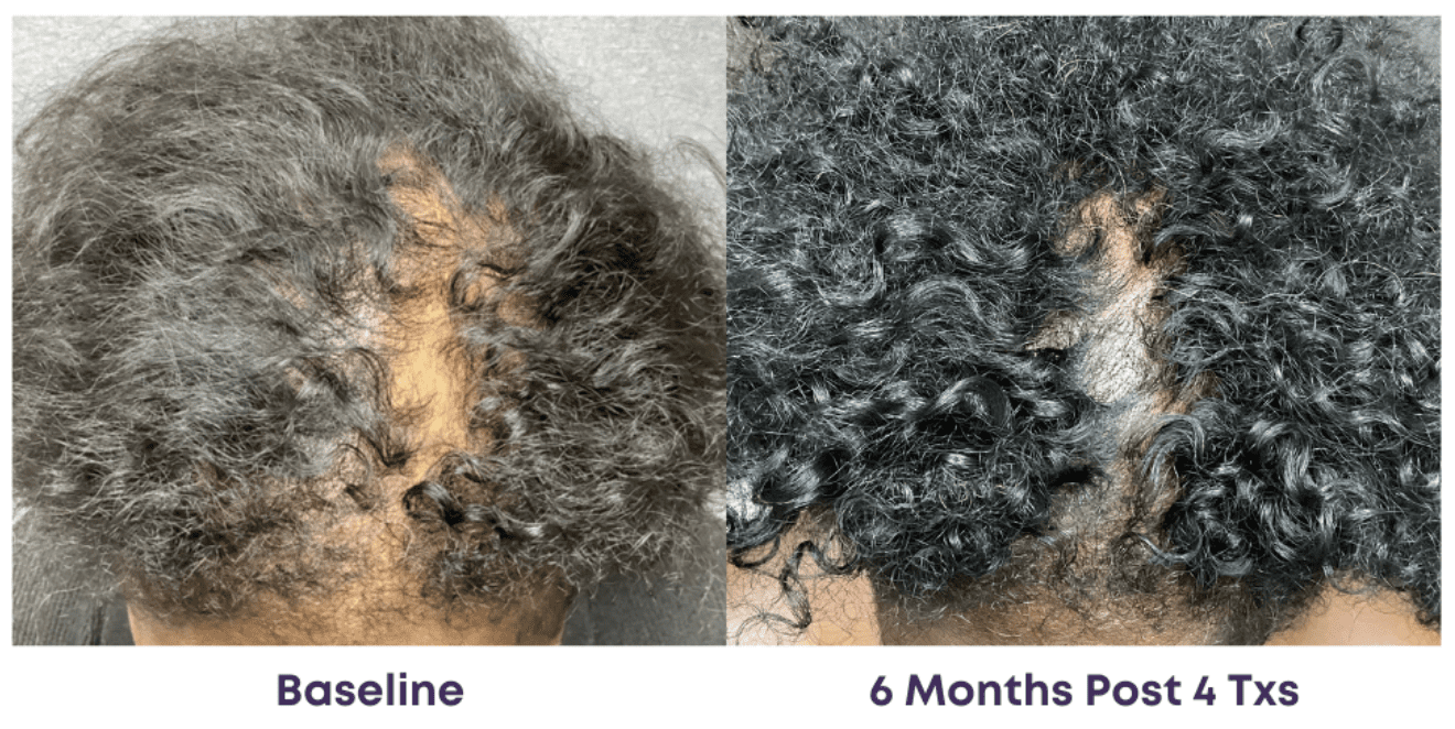 Results vary, but many clients notice improved hair texture, thickness, and reduced shedding within a few weeks. For optimal results, we recommend 3-4 treatments each spaced about 4–6 weeks apart. Because PRP uses your body’s natural healing power, the improvements continue to build over time.